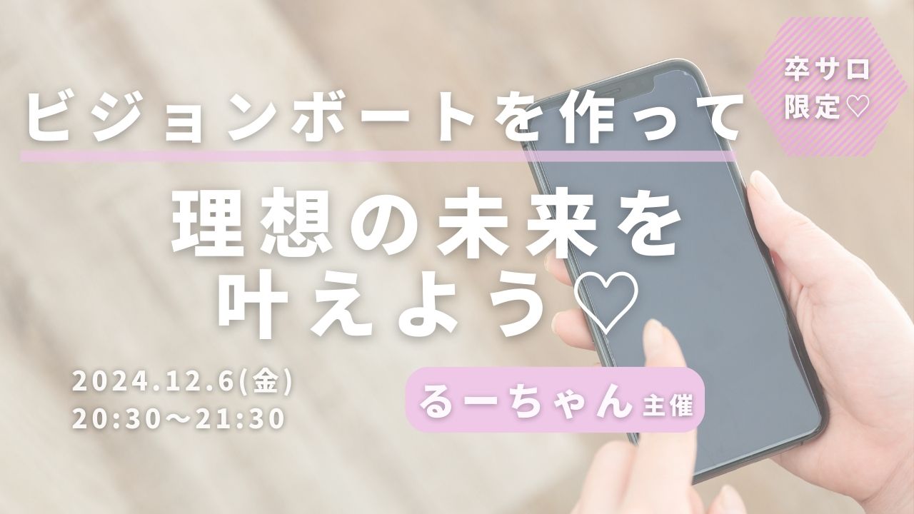 ワークショップ恋愛の苦悩を経て、スピード婚を叶えた秘訣シェア会〜恋愛編〜 Pri-me 2024年12月6日 ・本サイトはサロン会員の方のみお楽しみいただけます ・卒サロ生はメニューよりログインしてください ・新規ご入会希望の方は事務局までお問い合わせください。LLA卒業生の方のみご入会可能です。 →お問い合わせはこちら るーちゃん