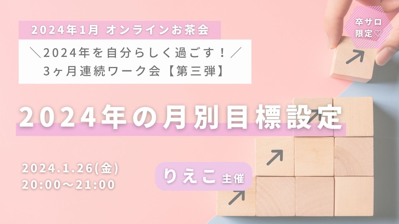 ワークショップ2024年を自分らしく過ごす!3か月連続ワーク会 第二弾「2024年の3大目標設定」 Pri-me 2024年1月26日 ・本サイトはサロン会員の方のみお楽しみいただけます ・卒サロ生はメニューよりログインしてください ・新規ご入会希望の方は事務局までお問い合わせください。LLA卒業生の方のみご入会可能です。 →お問い合わせはこちら