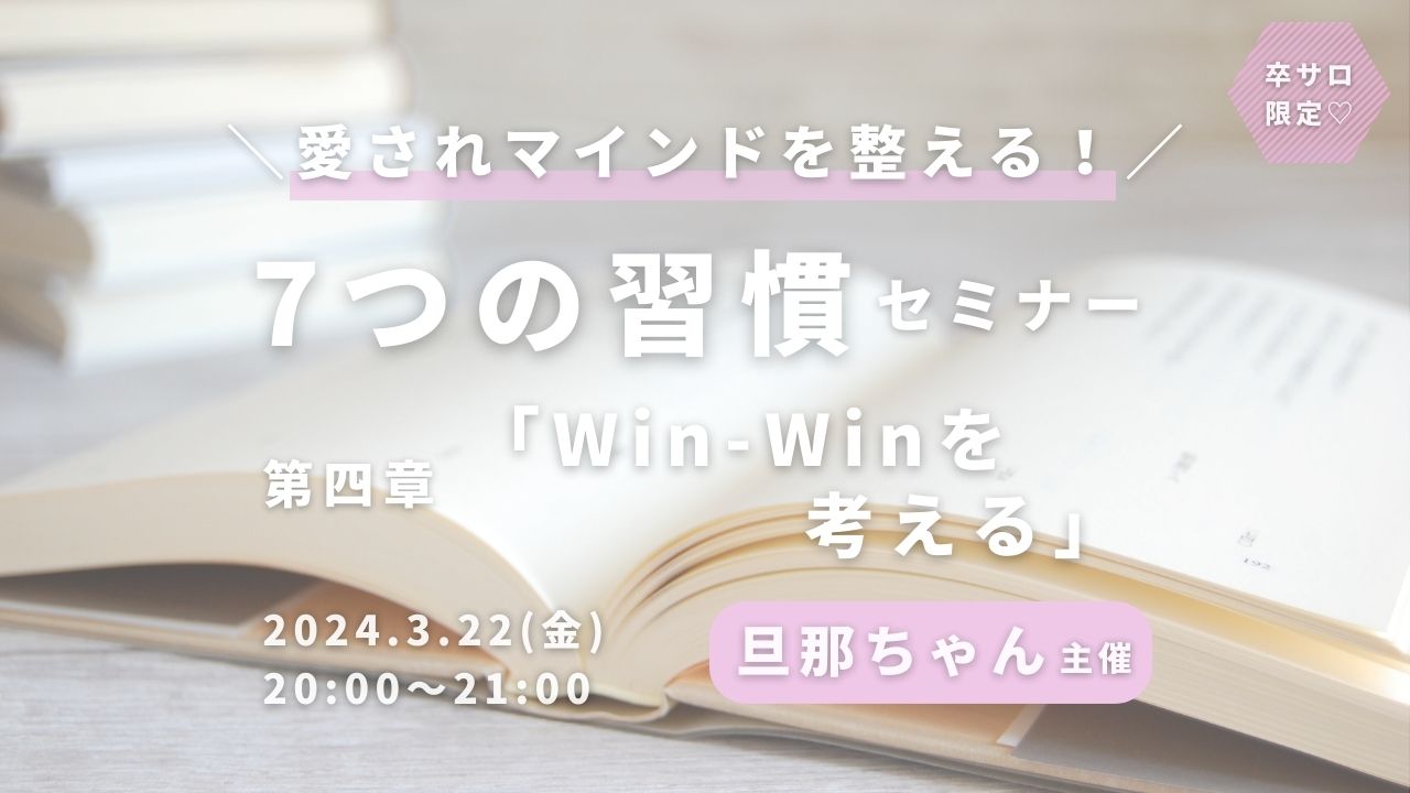 無料セミナー愛されマインドを整える!7つの習慣セミナー 第四章「Win-Winを考える」 Pri-me 2024年3月22日 ・本サイトはサロン会員の方のみお楽しみいただけます ・卒サロ生はメニューよりログインしてください ・新規ご入会希望の方は事務局までお問い合わせください。LLA卒業生の方のみご入会可能です。 →お問い合わせはこちら
