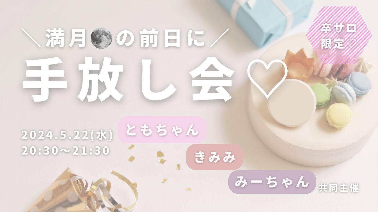 ワークショップ満月の前日に手放し会♡ Pri-me 2024年5月22日 ・本サイトはサロン会員の方のみお楽しみいただけます ・卒サロ生はメニューよりログインしてください ・新規ご入会希望の方は事務局までお問い合わせください。LLA卒業生の方のみご入会可能です。 →お問い合わせはこちら ともちゃん