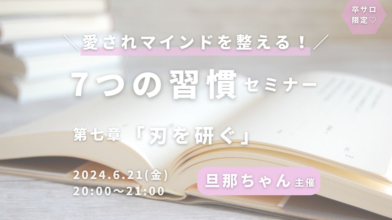無料セミナー愛されマインドを整える!7つの習慣セミナー 第七章「刃を研ぐ」 Pri-me 2024年6月21日 ・本サイトはサロン会員の方のみお楽しみいただけます ・卒サロ生はメニューよりログインしてください ・新規ご入会希望の方は事務局までお問い合わせください。LLA卒業生の方のみご入会可能です。 →お問い合わせはこちら