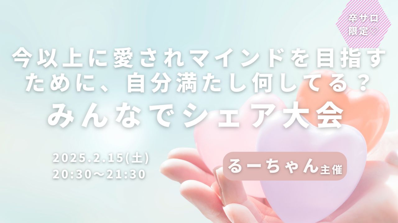 ワークショップ今以上に愛されマインドを目指すために、自分満たし何してる?みんなでシェア大会 uenoriekostaff 2025年2月15日 ・本サイトはサロン会員の方のみお楽しみいただけます ・卒サロ生はメニューよりログインしてください ・新規ご入会希望の方は事務局までお問い合わせください。LLA卒業生の方のみご入会可能です。 →お問い合わせはこちら るーちゃん