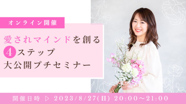 無料セミナー愛されマインドを創る4ステップ大公開プチセミナー 2023年8月27日 Pri-me https://uenorieko.com/online_salon/wp-content/uploads/2023/07/salon_logo2.jpg LLA卒業生限定オンラインサロン♡ 愛されマインドをより強化し 「自分で自分をご機嫌にできる私」になる この為に超超超超大切な 4ステップ&「〇〇の力」を大公開! …