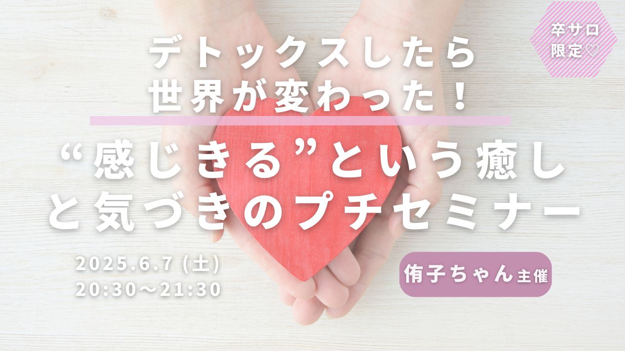 ワークショップデトックスしたら世界が変わった! “感じきる”という癒しと気づきのプチセミナー uenoriekostaff 2025年6月7日 ・本サイトはサロン会員の方のみお楽しみいただけます ・卒サロ生はメニューよりログインしてください ・新規ご入会希望の方は事務局までお問い合わせください。LLA卒業生の方のみご入会可能です。 →お問い合わせはこちら 侑子ちゃん