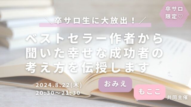 ワークショップ卒サロ生に大放出!ベストセラー作者から聞いた幸せな成功者の考え方を伝授します 2024年8月22日 Pri-me https://uenorieko.com/online_salon/wp-content/uploads/2023/07/salon_logo2.jpg LLA卒業生限定オンラインサロン♡ 2024年8月22日(木)開催 卒サロ生に大放出! ベストセラー作者から聞いた幸せな成功者の考え方を伝授します ▼アーカイブ動画はこち …