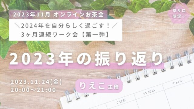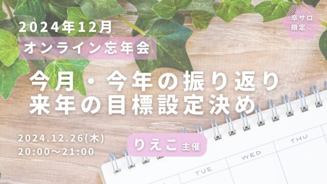 ワークショップ今月・今年の振り返り/来年の目標設定決めワーク~オンライン忘年会~ 2024年12月26日 Pri-me https://uenorieko.com/online_salon/wp-content/uploads/2023/07/salon_logo2.jpg LLA卒業生限定オンラインサロン♡ 2024年12月26日(木)開催 今月・今年の振り返り/来年の目標設定決めワーク~オンライン忘年会~ 以下よりご視聴ください♡ …