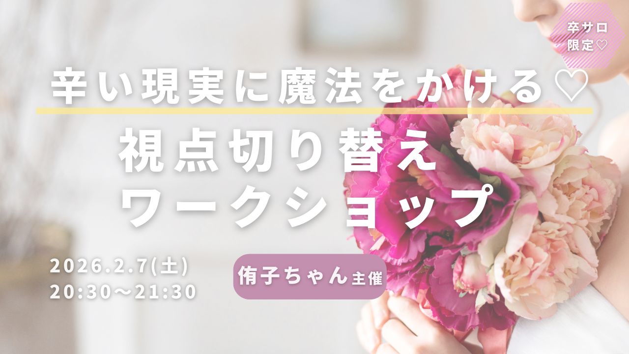 ワークショップ辛い現実に魔法をかける♡ 視点切り替えワークショップ uenoriekostaff 2026年2月7日 ・本サイトはサロン会員の方のみお楽しみいただけます ・卒サロ生はメニューよりログインしてください ・新規ご入会希望の方は事務局までお問い合わせください。LLA卒業生の方のみご入会可能です。 →お問い合わせはこちら 侑子ちゃん