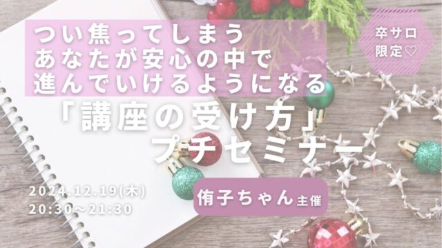 つい焦ってしまうあなたが安心の中で進んでいけるようになる 「講座の受け方」プチセミナー